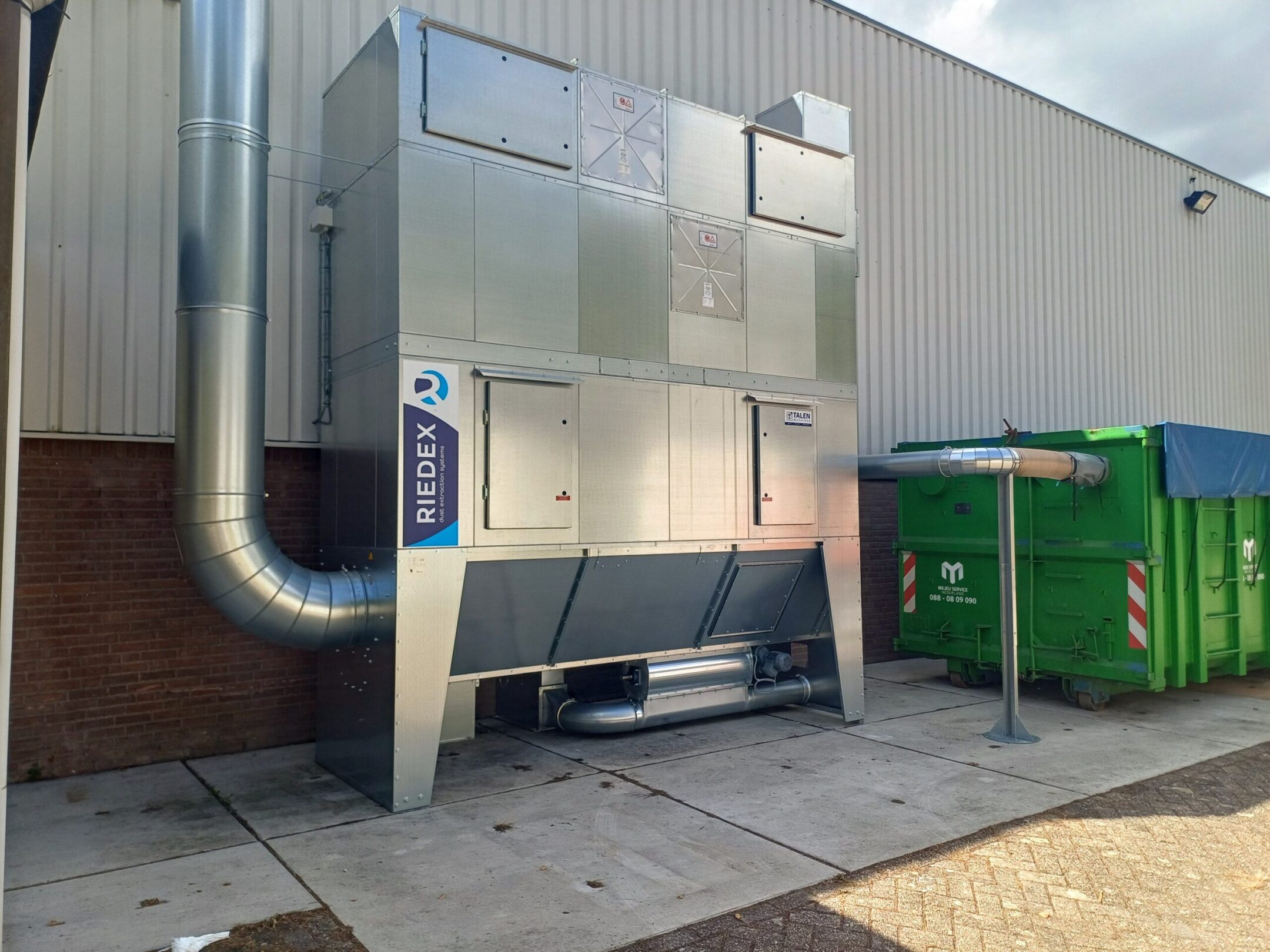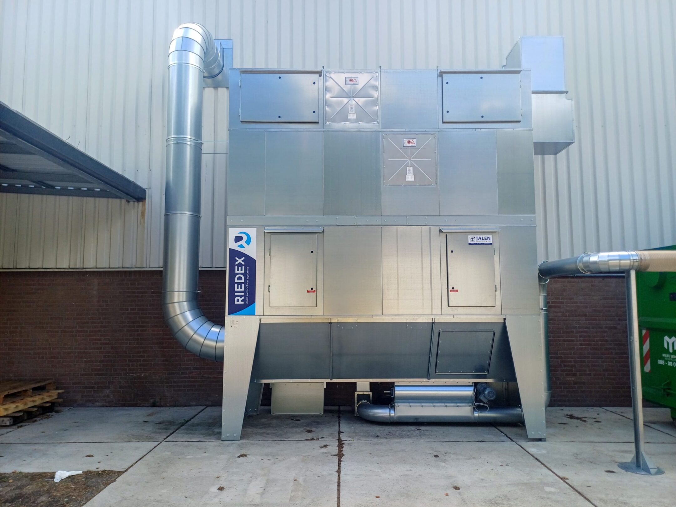 Dit project betrof de levering en installatie van een complete afzuiginstallatie (afzuigunit met leidingnet) voor de werkplaats van Vivara Pro te Vierlingsbeek. Het doel was meer afzuigcapaciteit, makkelijk afvoeren van het houtmot en een schone werkomgeving te creëren. Dit hebben we gecreëerd met een Riedex MD450C. Een afzuigunit met doorblaassysteem, waarmee het afval (houtstof en spanen) via de transportleiding naar een wisselcontainer wordt getransporteerd. De capaciteit van de MD450C is circa 12.000 m³/h. Dit maakt de unit geschikt voor het gelijktijdig afzuigen van meerdere machines.