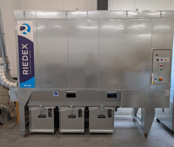 Afzuigunits met een capaciteit van meer dan 8.000m3/h moeten (doorgaans) buiten worden opgesteld. Vertrekpunt voor het ontwerp van zo’n systeem is altijd de benodigde capaciteit. Hoeveel machines worden tegelijkertijd gebruikt? Met deze informatie kunnen we de juiste afzuiginstallatie bepalen. En daarbij het leidingnet uitwerken. Het houtafval kan getransporteerd worden naar een containerinstallatie, een voorraadbunker (verbranding), een brikettenpers of een andere opvang naar keuze. De gefilterde retourlucht wordt via retourkanalen en een luchtverdeelkanaal weer naar binnen gebracht. Optioneel mogelijk met keuzeklep op basis van buitentemperatuur. Doordat we werken met onderdruk-afzuigunits kunnen we ook met meerdere aanzuigleidingen naar binnen gaan. Deze leidingen zijn niet gekoppeld aan één specifieke ventilator. Het voordeel is dat de capaciteit (en de verbruikte energie) maximaal wordt ingezet bij de machine die in gebruik zijn. Er is ook veel maatwerk qua plaatsing en positionering mogelijk.
