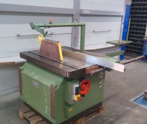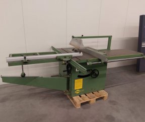 Zwaar uitgevoerde cirkelzaagmachine van Duits fabrikaat. Machine wordt voor uitleveren voorzien van onderhoudsbeurt.
