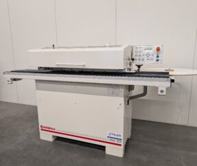 Jong gebruikte: Kantenaanlijmmachine met lijmunit, eindkapunit en gelijkfreesunit. Machine is geschikt voor kantenband tot een dikte van 2 mm en voor panelen tot een dikte van 50 mm.