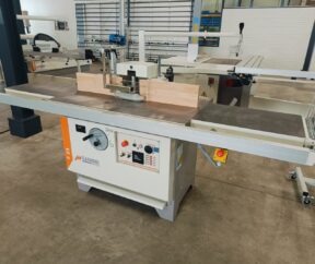 Solide tafelfreesmachine met tafelverlenging links- en rechts, met uittrekbare steun voorzijde. Machine handmatig instelbaar, mechanisch digitaal afleesbaar. Inclusief elektrische voorbereiding voor het doorvoerapparaat. Prijs af Staphorst.