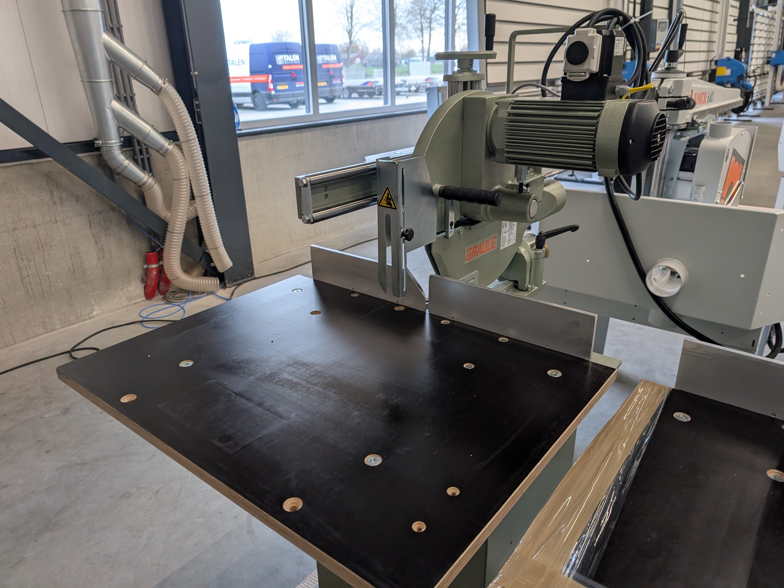 Tot 170 mm hoog afkorten, in dubbel verstek en met een vast nulpunt. Bij het in verstek zetten van de machine blijft het zaagblad op hetzelfde punt het materiaal binnen komen. Prijs is compleet, snoer, stekker, gebruiksklaar met HM-zaagblad af Staphorst.