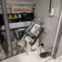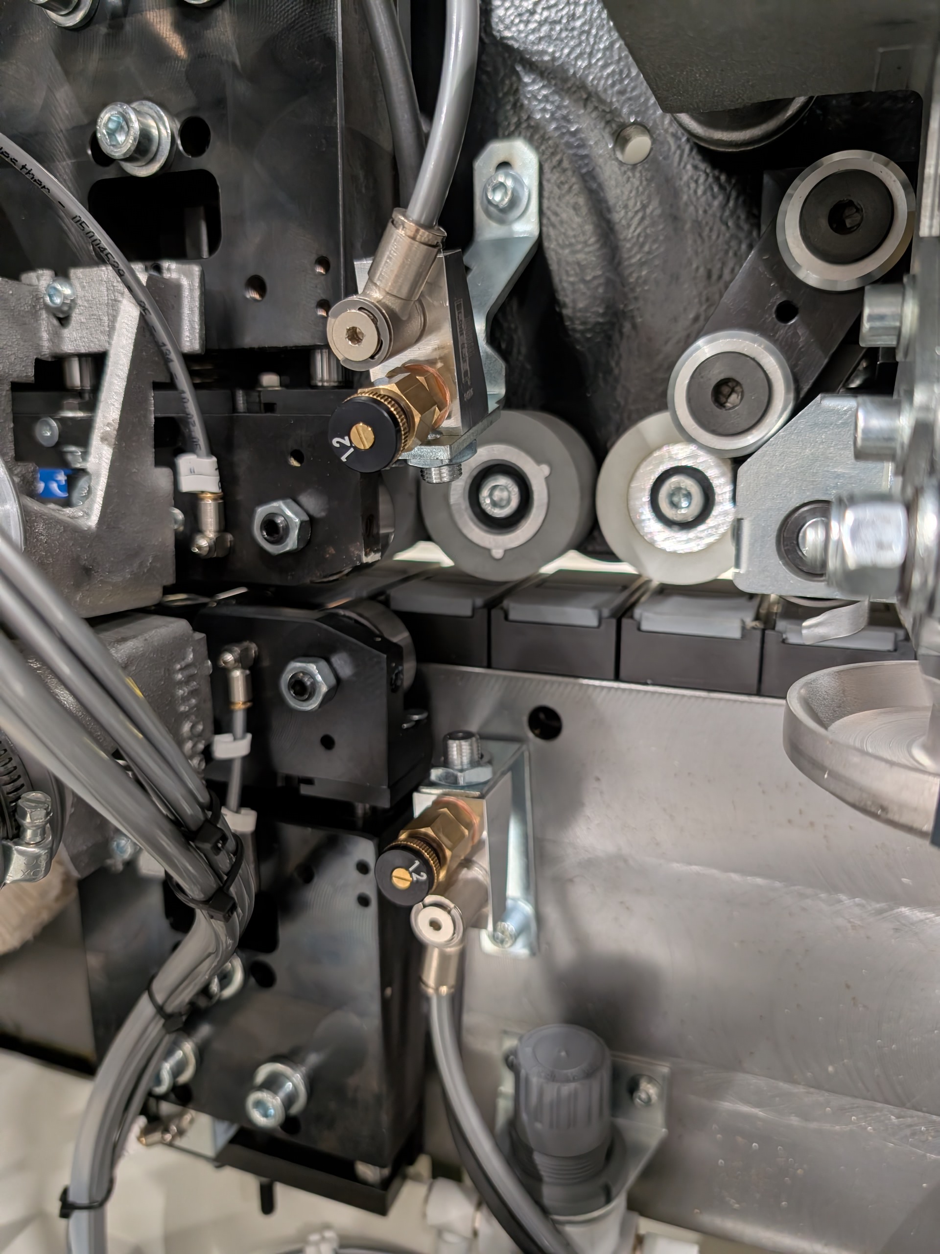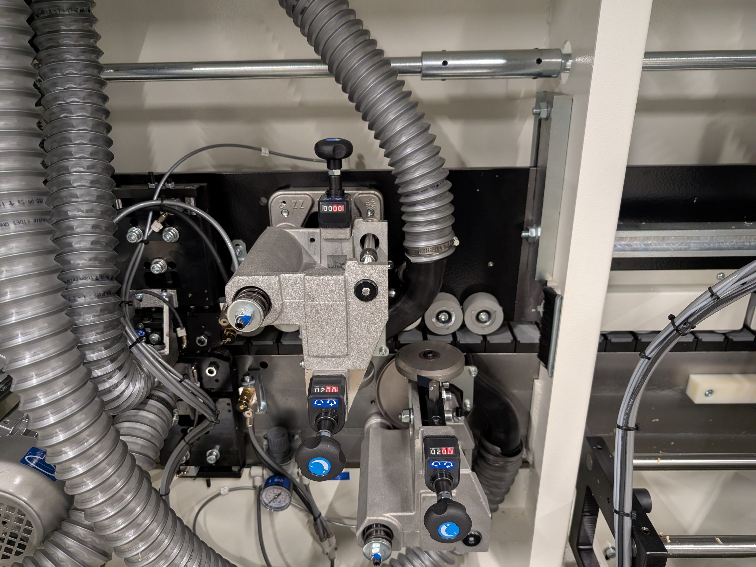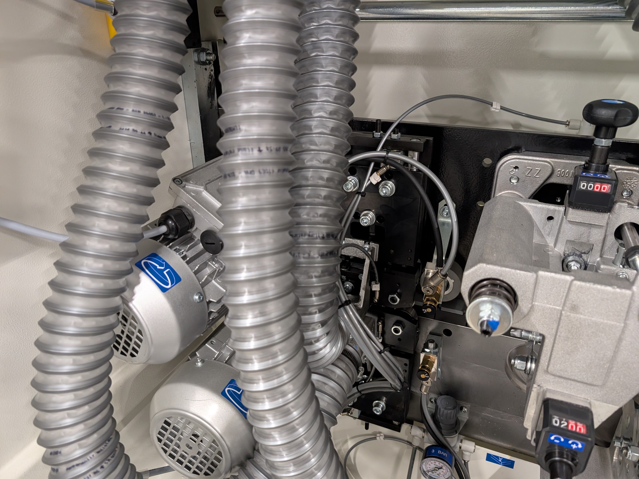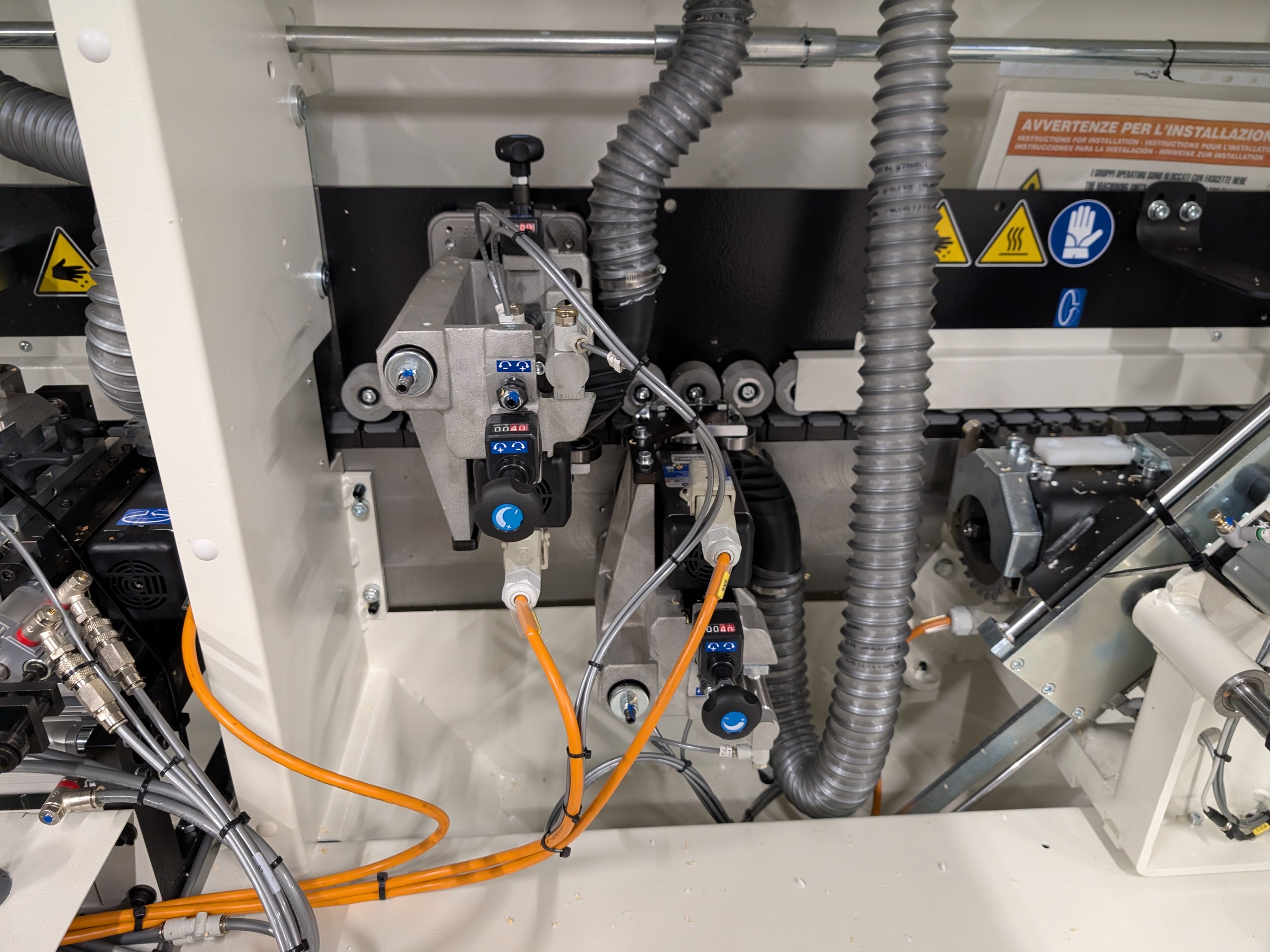 Kantenaanlijmmachine geschikt voor panelen tot 60 mm dikte en kantenband op rol tot 3 mm dikte. Het bedienen van de machine gaat via het 15'' inch touchscreen aan de voorzijde.