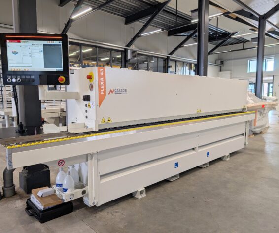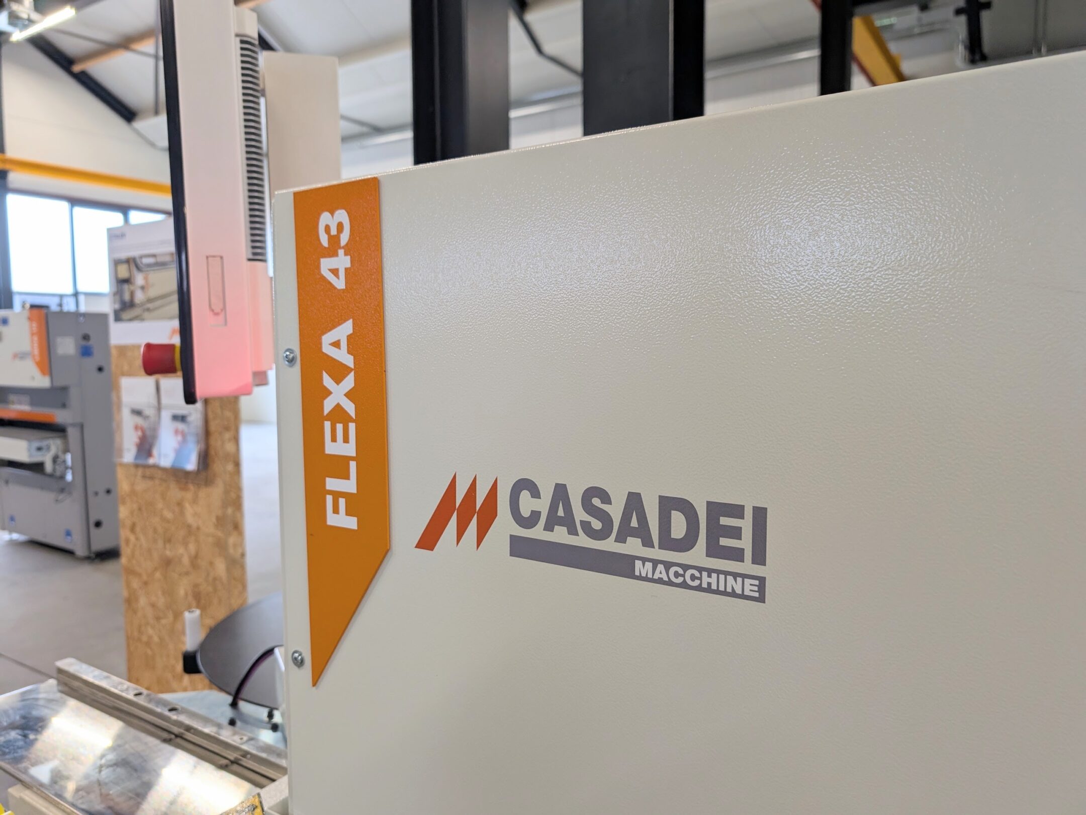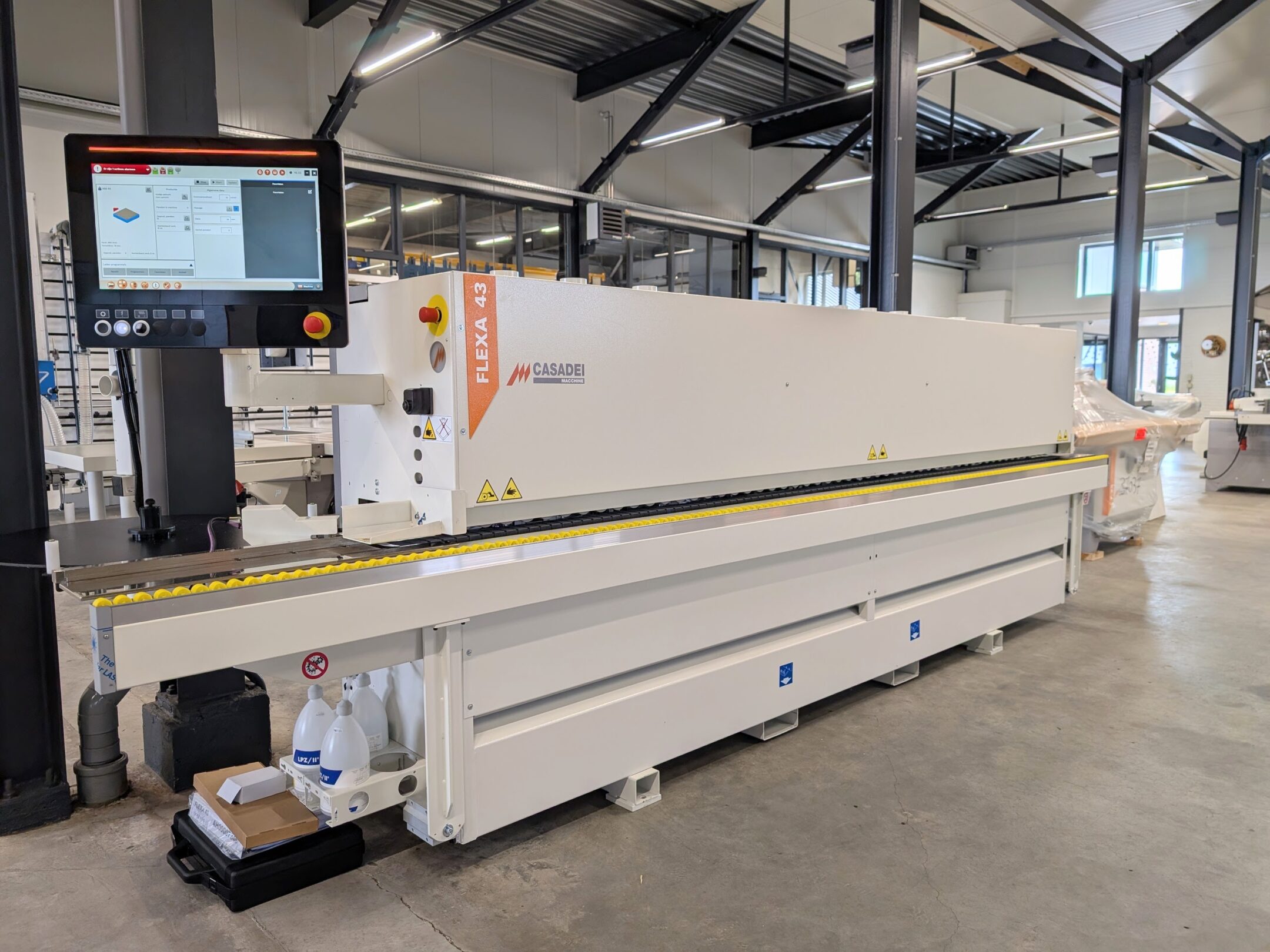 De Casadei Flexa 43 is een robuuste kantenaanlijmmachine, ontworpen voor hoogwaardige afwerking van diverse plaatmateriaal. Met zijn eenvoudige touchscreen bediening en (voorsmelt) lijmsysteem levert deze machine consistente kwaliteit.