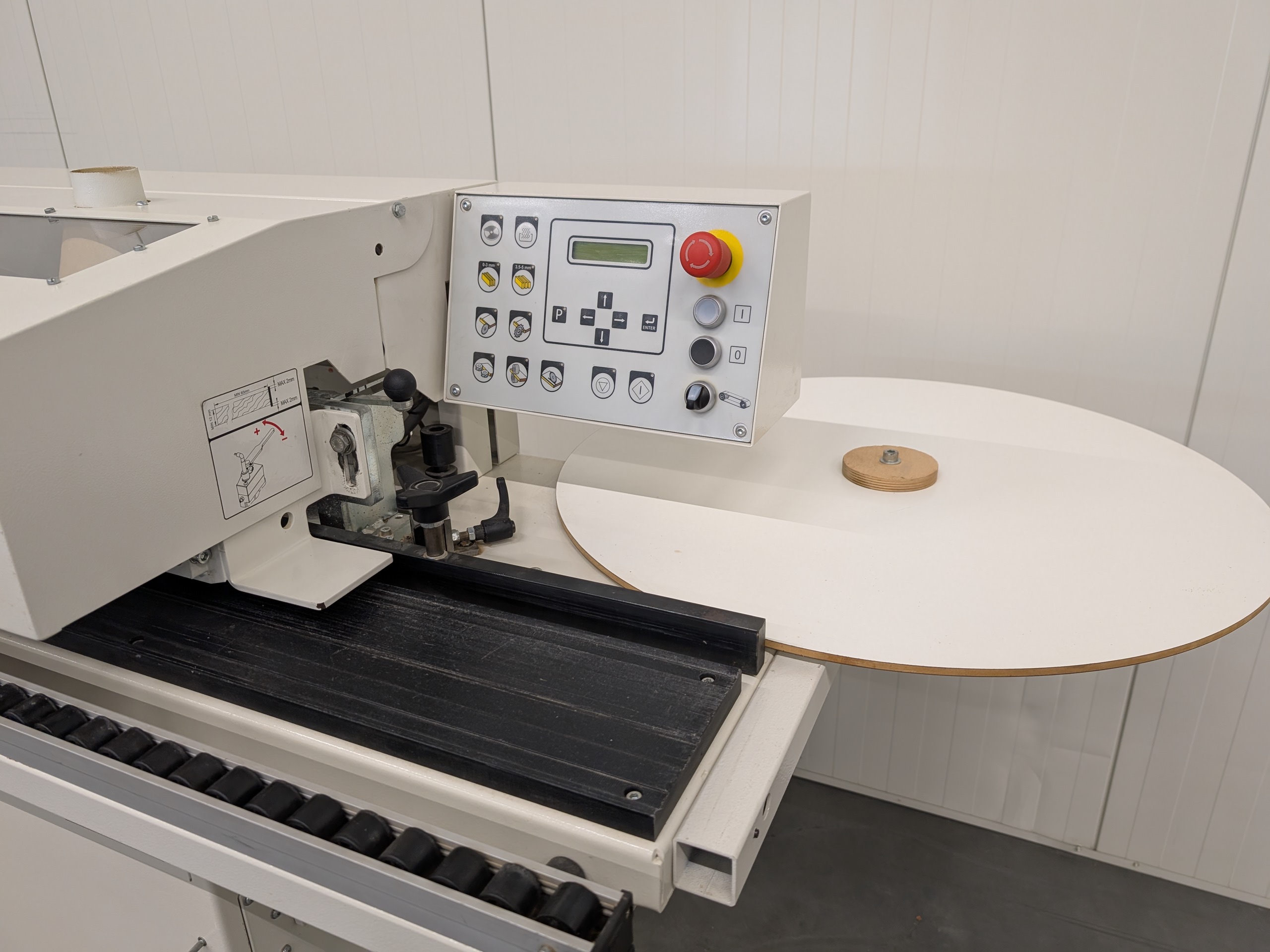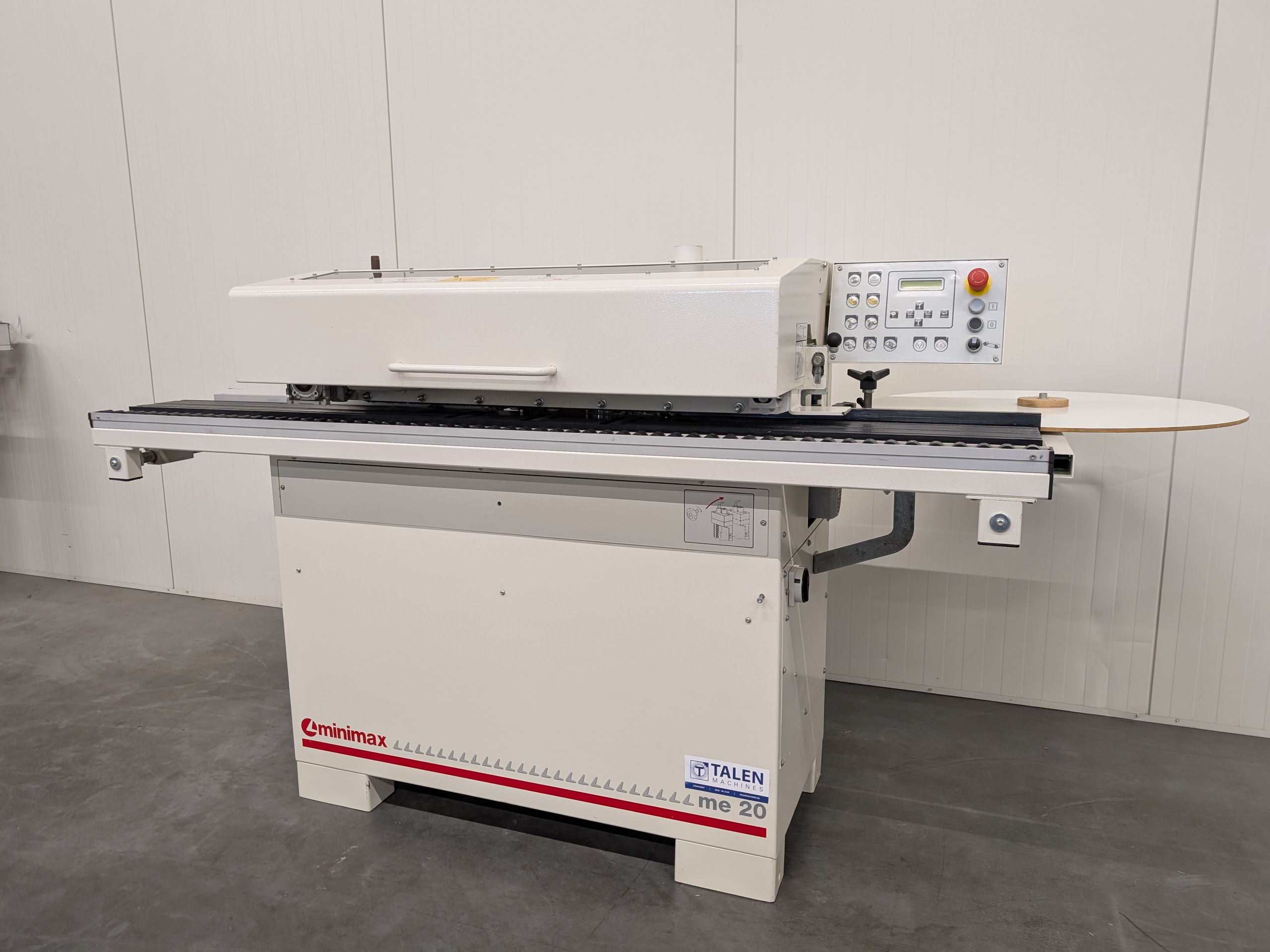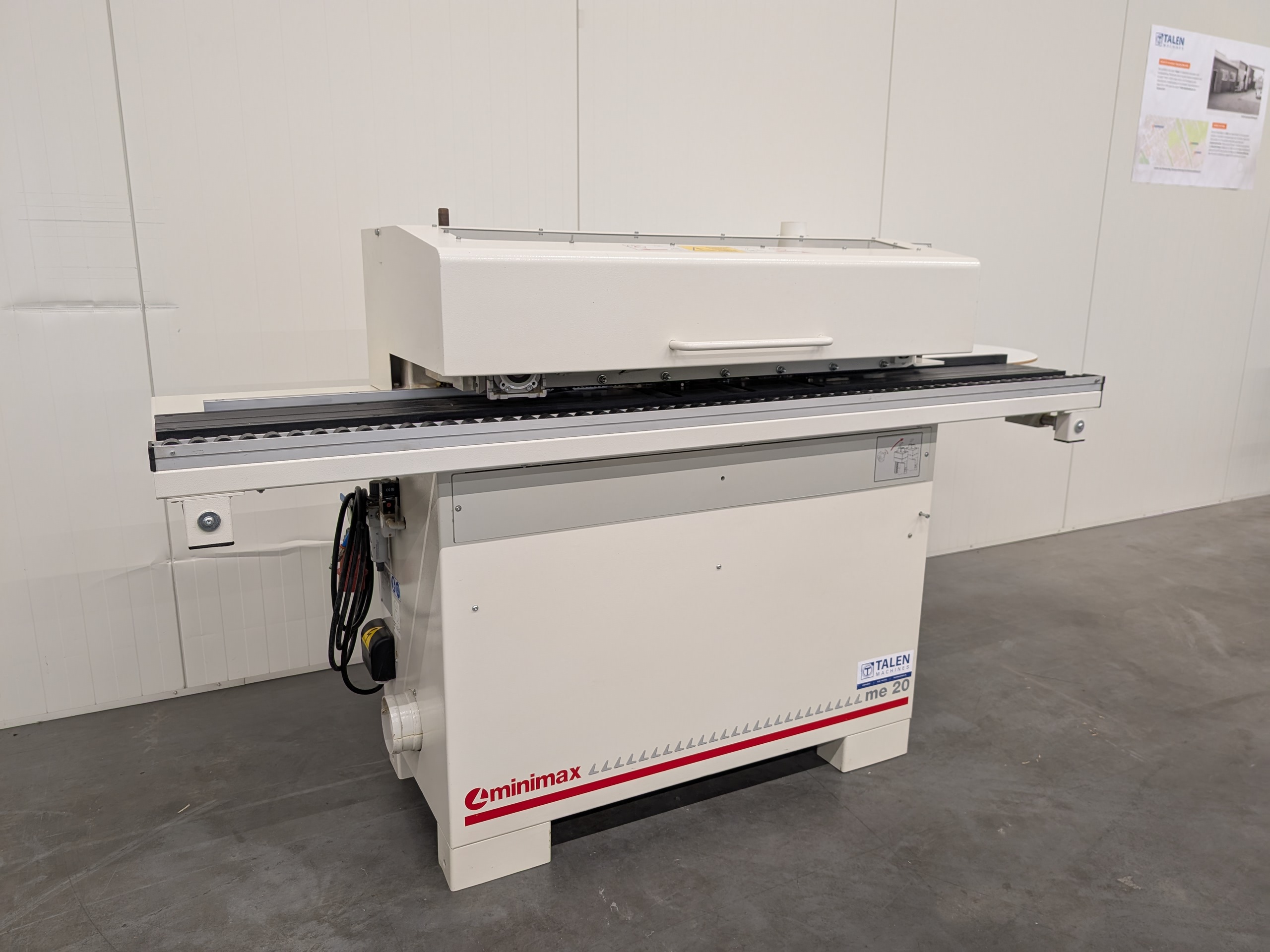 Jong gebruikte: Kantenaanlijmmachine met lijmunit, eindkapunit en gelijkfreesunit. Machine is geschikt voor kantenband tot een dikte van 2 mm en voor panelen tot een dikte van 50 mm.