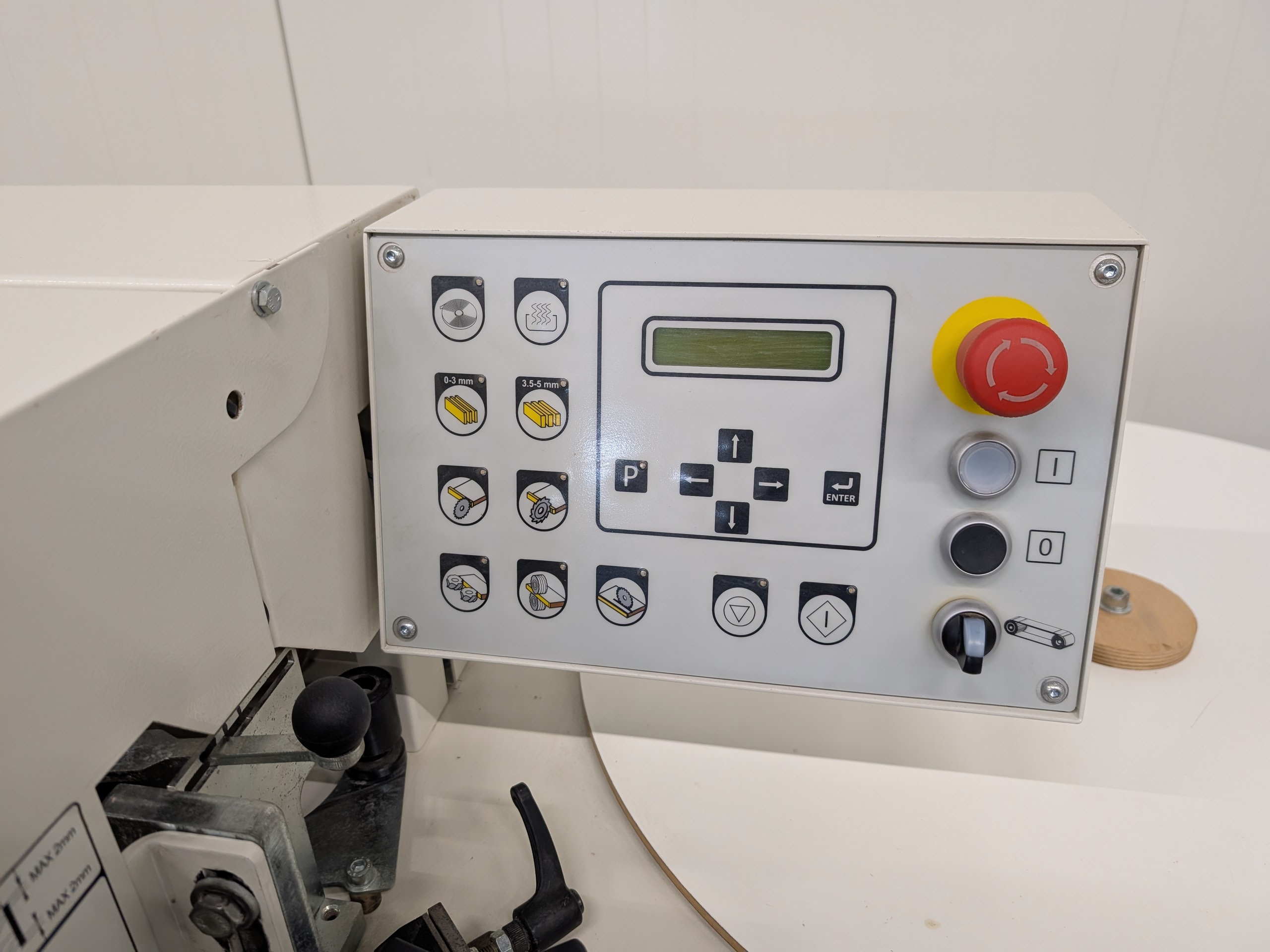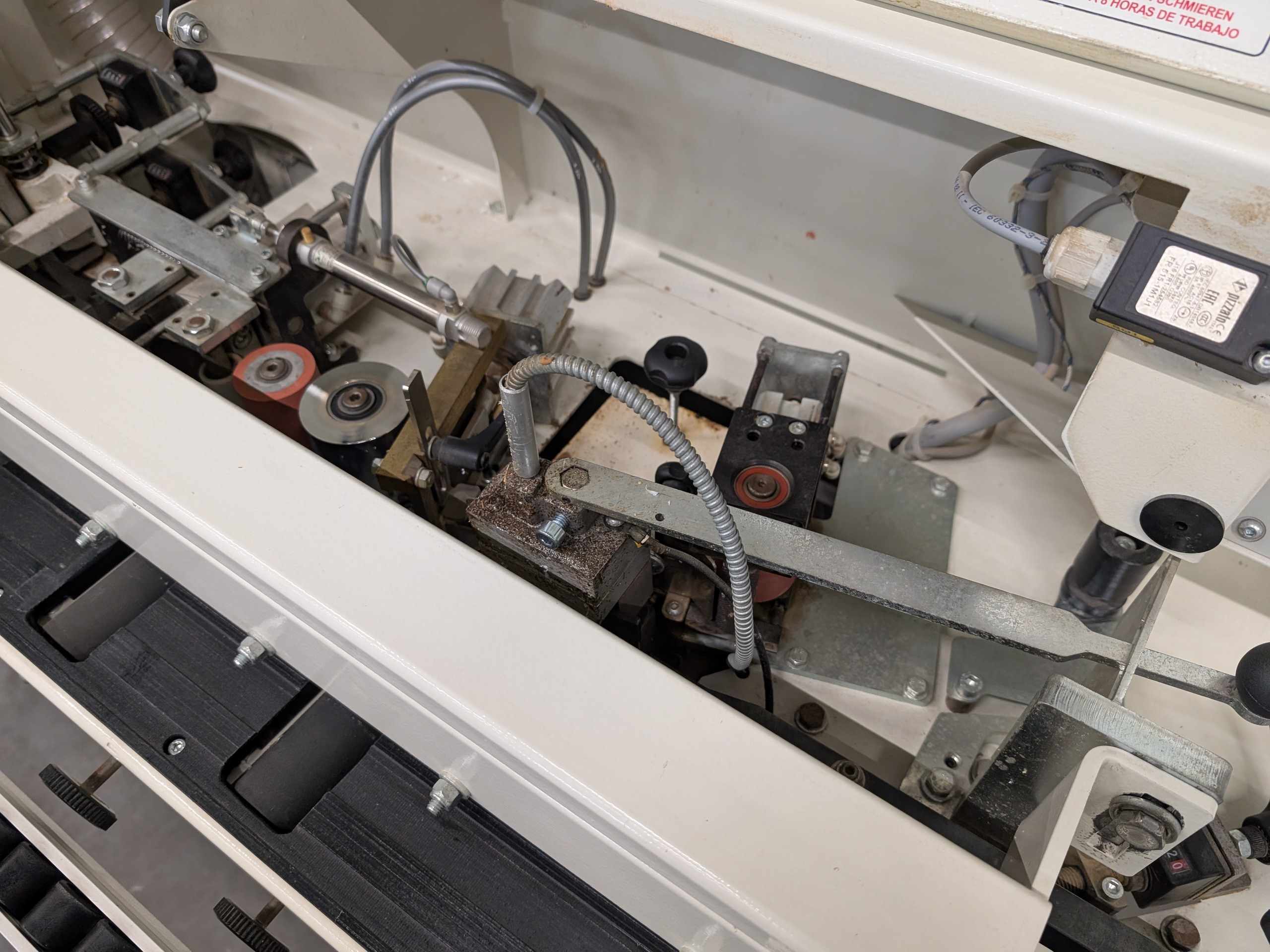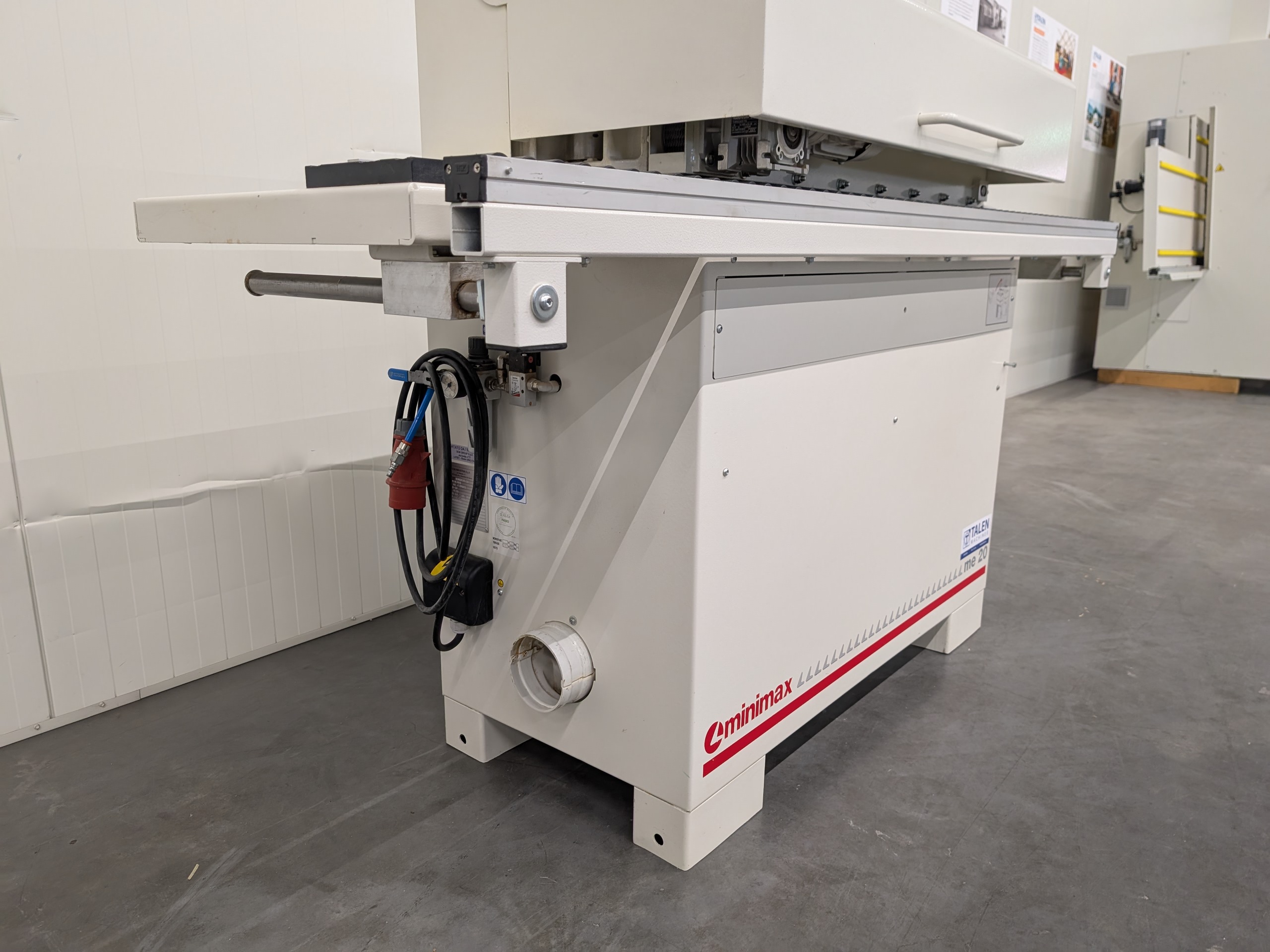 Jong gebruikte: Kantenaanlijmmachine met lijmunit, eindkapunit en gelijkfreesunit. Machine is geschikt voor kantenband tot een dikte van 2 mm en voor panelen tot een dikte van 50 mm.